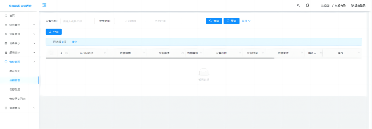 光伏運營系統(tǒng)按功能劃分為綜合數(shù)據(jù)大屏和電站管理兩種平臺展示,可分別通過web端和移動端同步訪問。其中電站管理平臺主要功能包括電站設(shè)備數(shù)據(jù)展示、告警管理、報表統(tǒng)計等。