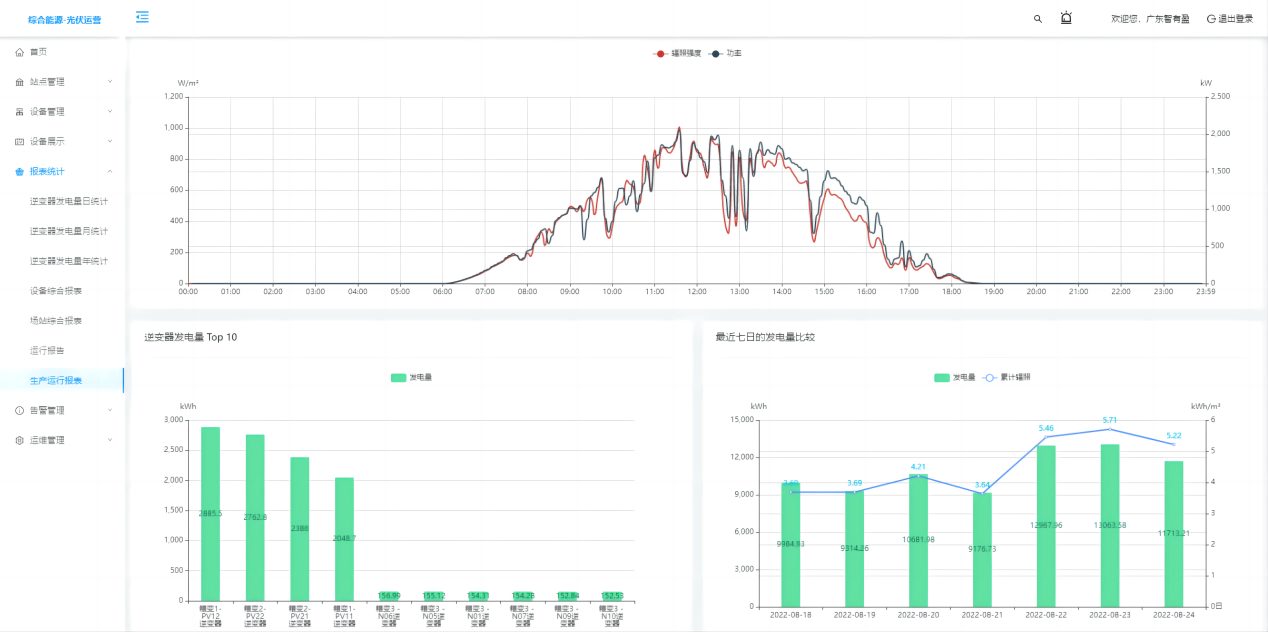 報表分析提供逆變器年、月、日發(fā)電量報表統(tǒng)計查詢導出功能,逆變器、場站綜合報表統(tǒng)計查詢導出功能,場站生產(chǎn)運行報表統(tǒng)計查詢導出功能。